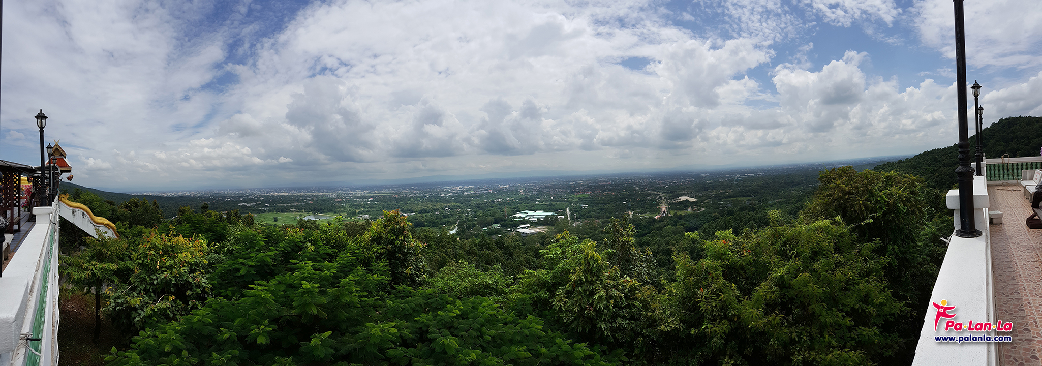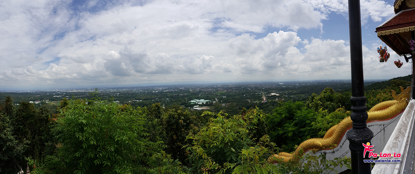ทิวทัศน์จากลานชมวิวของวัด ที่ในวันอากาศดีจะสามารถเพลิดเพลินกับภาพเมืองเชียงใหม่และก้อนเมฆขาวใต้ฟ้าครามได้