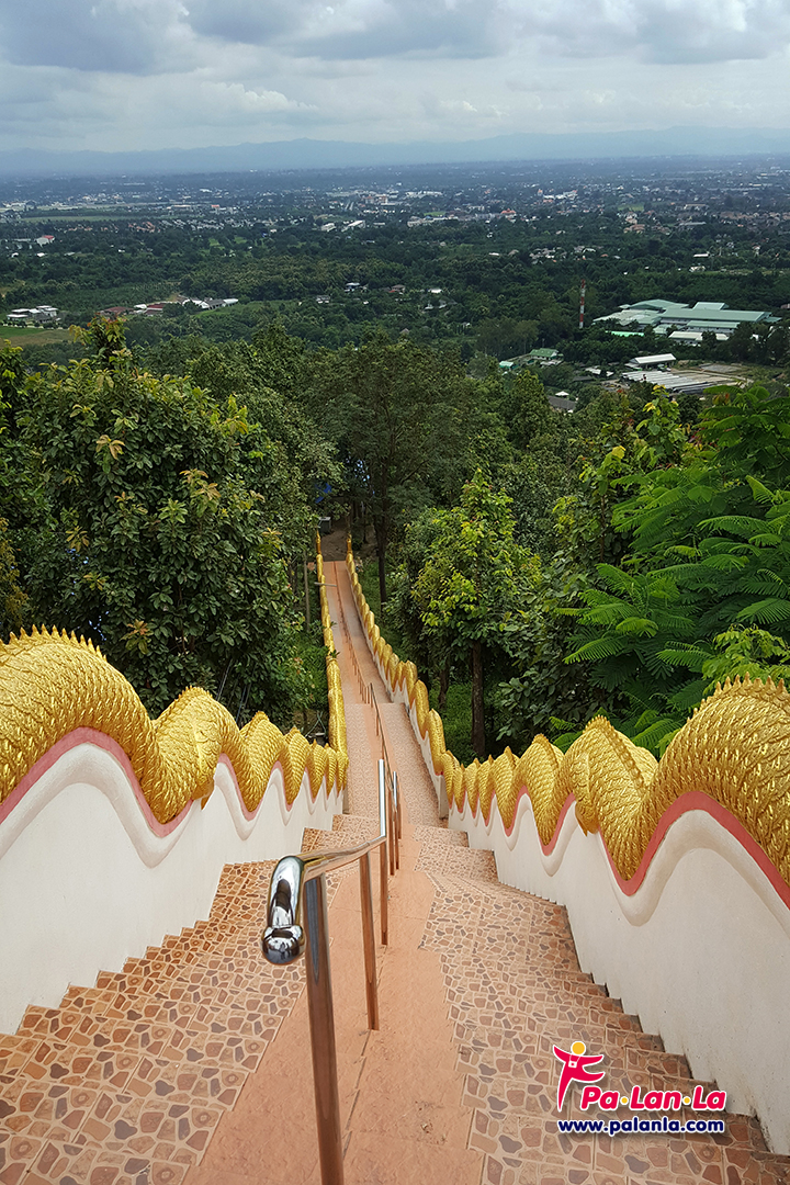 บันไดทางลงเขาของวัดพระธาตุดอยคำที่ต้องใช้ความระมัดระวังในการเดินอย่างยิ่ง