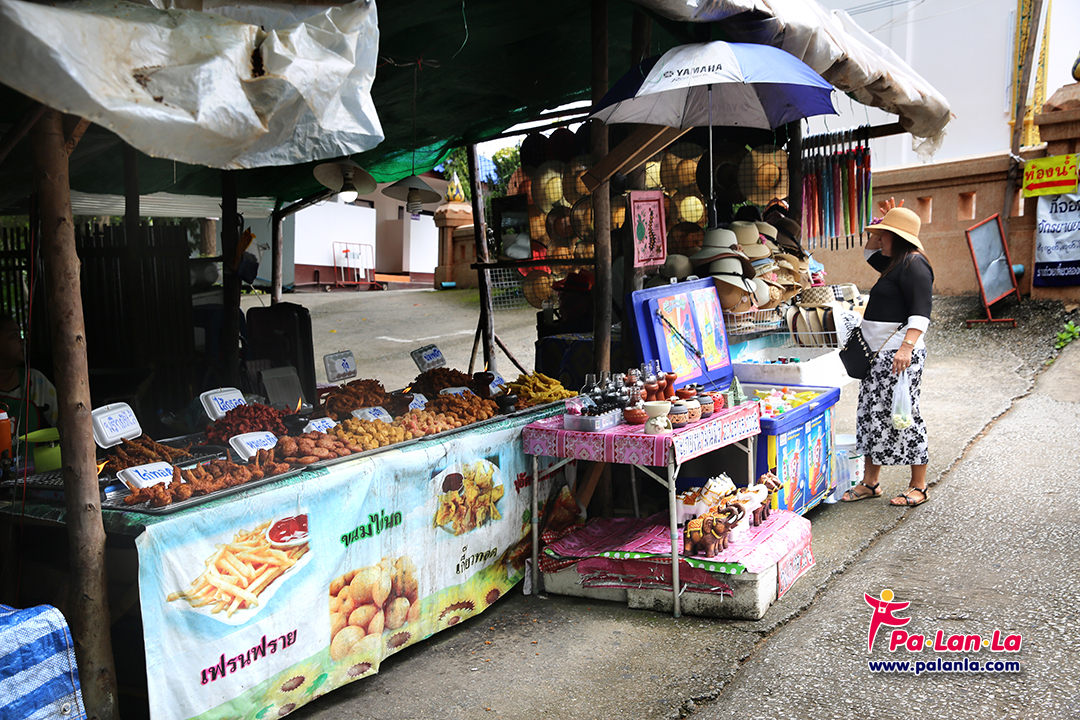 ร้านจำหน่ายเสื้อผ้าสไตล์เมืองเหนือระหว่างทางเดินจากลานจอดรถมายังตัววัด