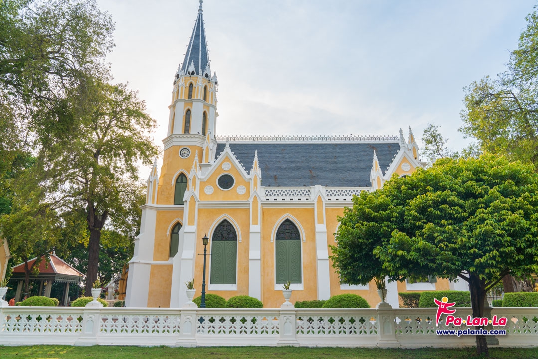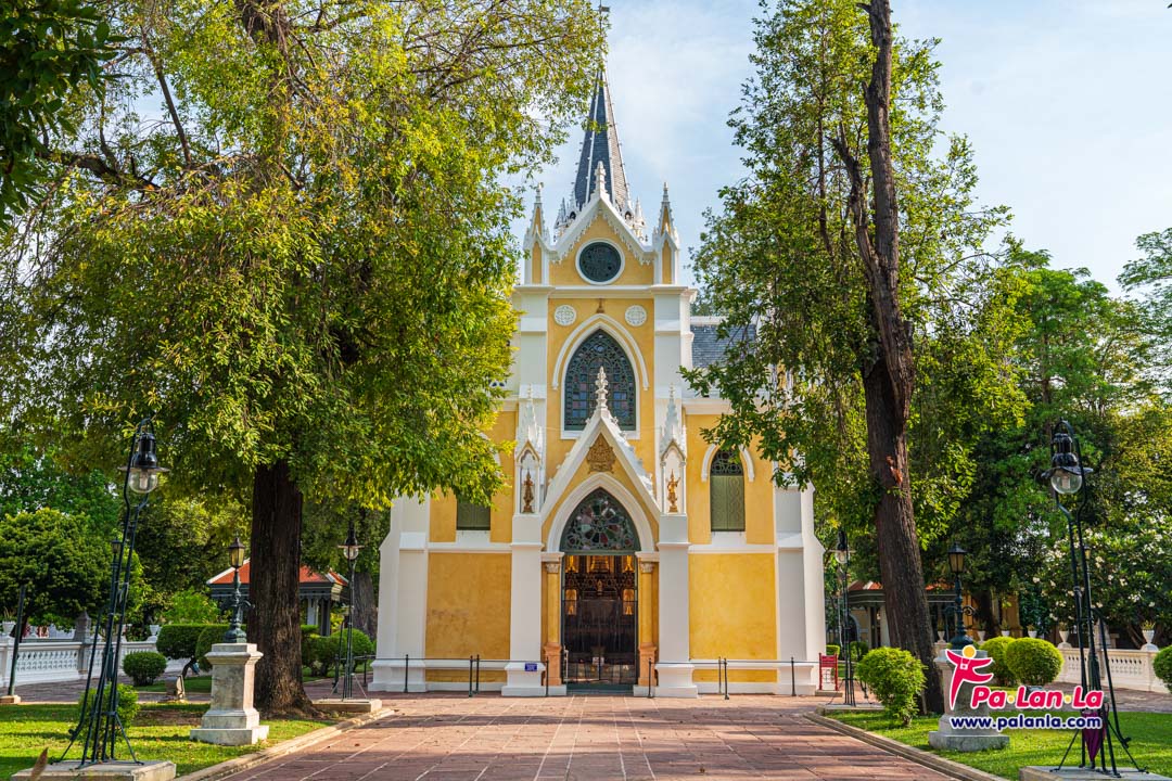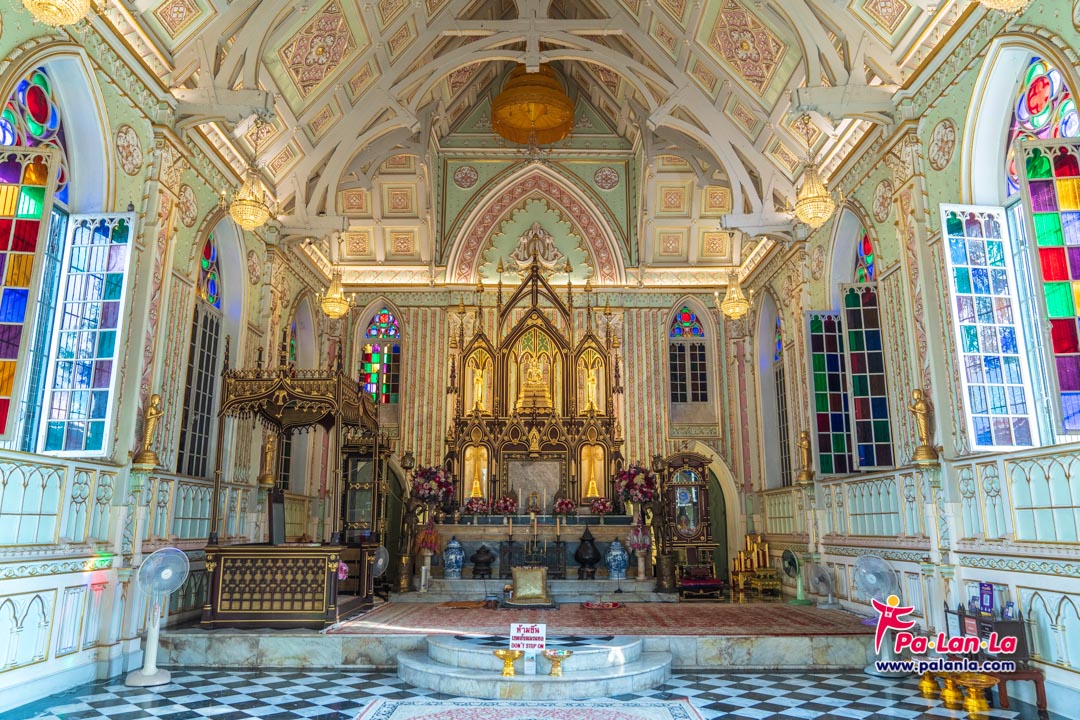 บรรยากาศภายในพระอุโบสถที่ได้รับการตกแต่งอย่างงดงามในสไตล์ยุโรป