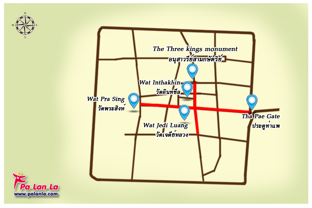 แผนที่ถนนคนเดินท่าแพและแหล่งท่องเที่ยวที่สำคัญบริเวณใกล้เคียง