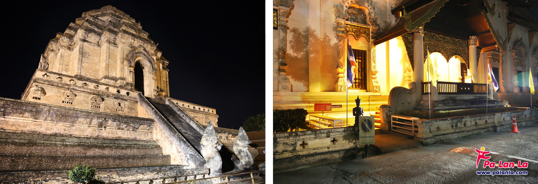 ช่วงหัวค่ำที่วัดเจดีย์หลวงใกล้กับถนนท่าแพ อีกหนึ่งบรรยากาศที่น่าไปสัมผัส