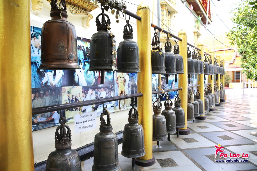 แถวระฆังรอบพระธาตุดอยสุเทพ ตามคติมงคลที่เชื่อว่าหากลูบหรือเคาะระฆังจะทำให้ชื่อเสียงกังวานไกลดั่งเสียงระฆัง