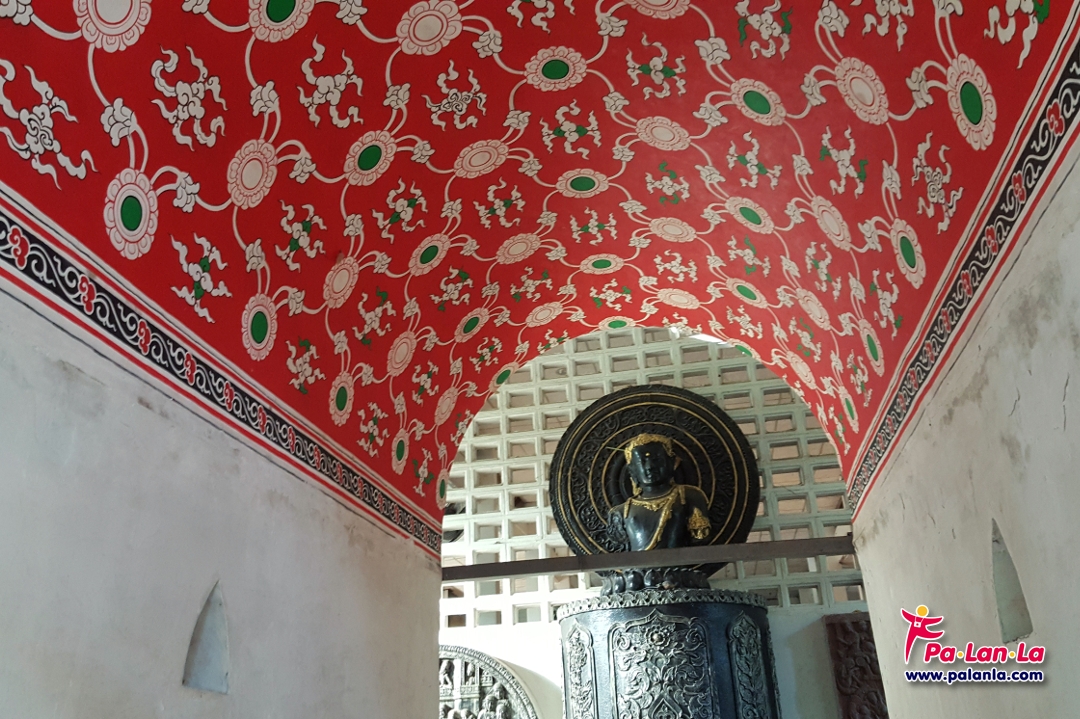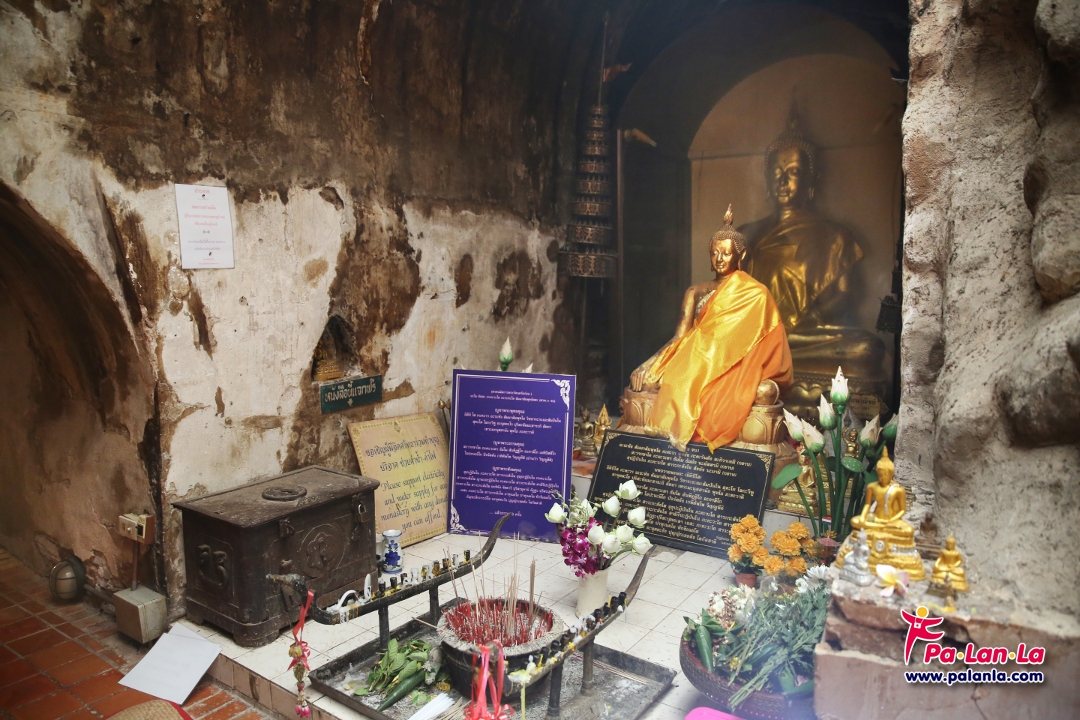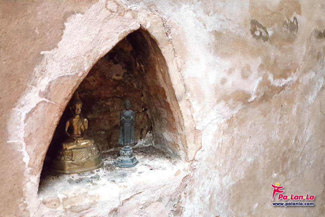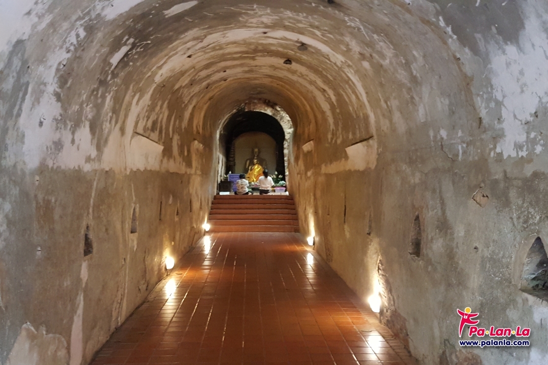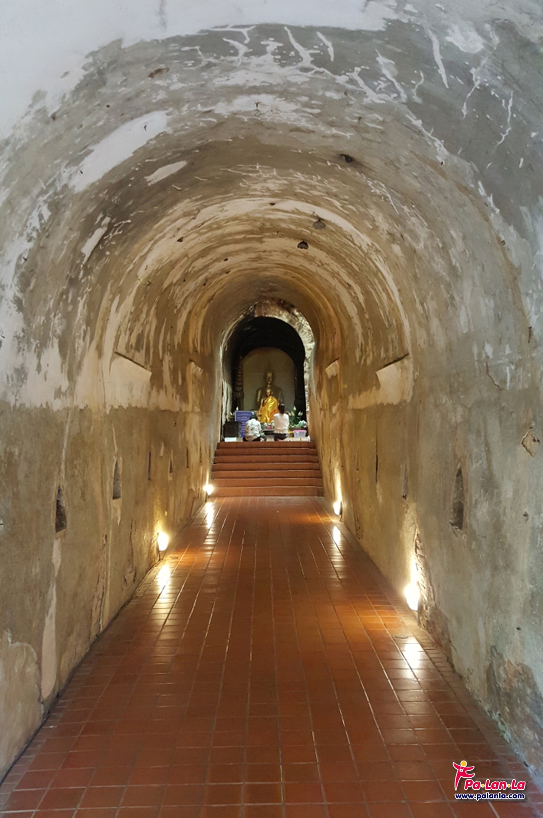 ขณะที่ด้านในของอุโมงค์ นอกจากช่องที่มีวางองค์พระไว้ ที่ผนังยังเป็นร่องรอยของการทาสีซึ่งปัจจุบันได้จางหายไปเกือบหมด