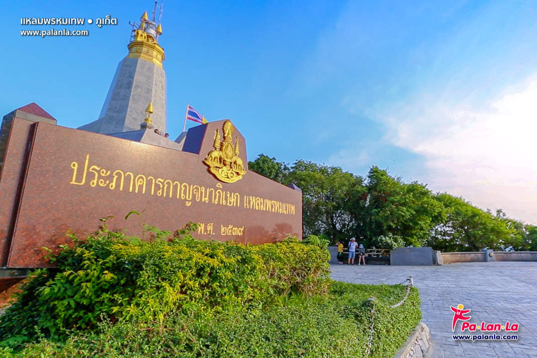 ประภาคารกาญจนาภิเษก จากลานจอดรถของแหลมพรหมเทพที่จะไปยังจุดชมวิว นักท่องเที่ยวจะต้องเดินผ่านประภาคารกาญจนาภิเษก ประภาคารแห่งนี้สร้างขึ้นในปี 2539 ในวโรกาสที่พระบาทสมเด็จพระเจ้าอยู่หัว รัชกาลที่ 9 ทรงครองสิริราชสมบัติครบ 50 ปี มีขนาดความกว้างที่ฐาน 9 เมตร สูง 50 ฟุต โดยแสงไฟจากโคมไฟจะมองเห็นได้ไกลถึง 39 กิโลเมตร ใช้เป็นเครื่องหมายในการเดินเรือเนื่องจากภูเก็ตถือเป็นศูนย์กลางเส้นทางคมนาคมในทะเลอันดามันที่สำคัญ