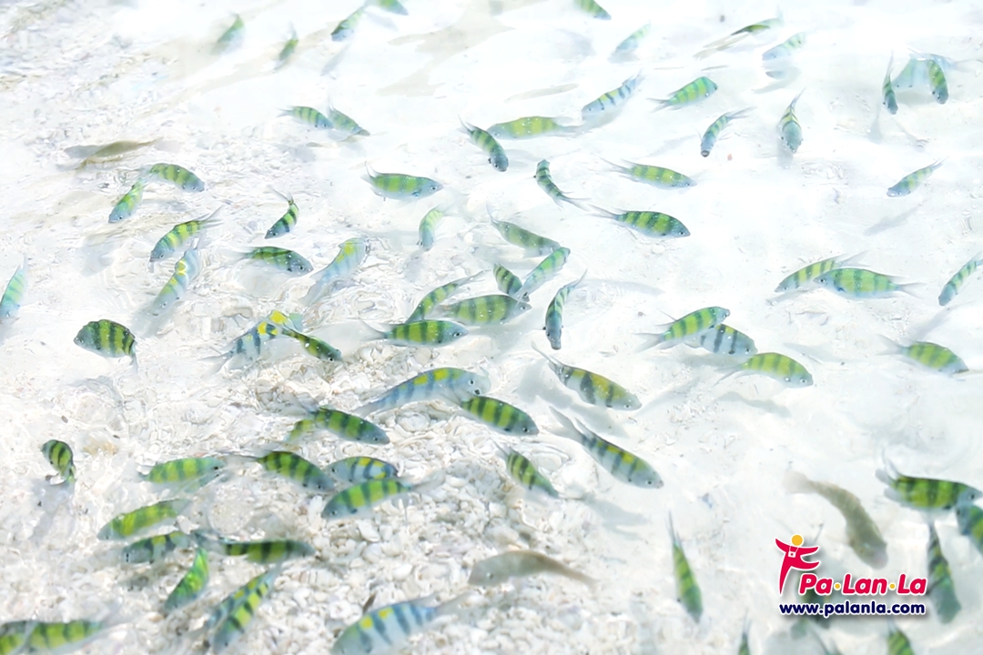 ปลาสีสันสวยงามที่ว่ายวนเวียนให้เห็นแม้บริเวณน้ำตื้น