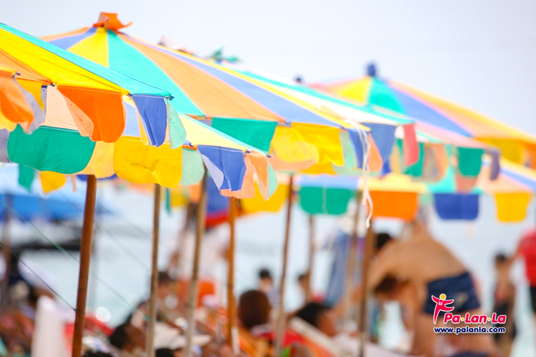 บริเวณหน้าหาดก็จะเต็มไปด้วยเปลผ้าใบและร่มสีสันสดใสที่มีไว้บริการนักท่องเที่ยว