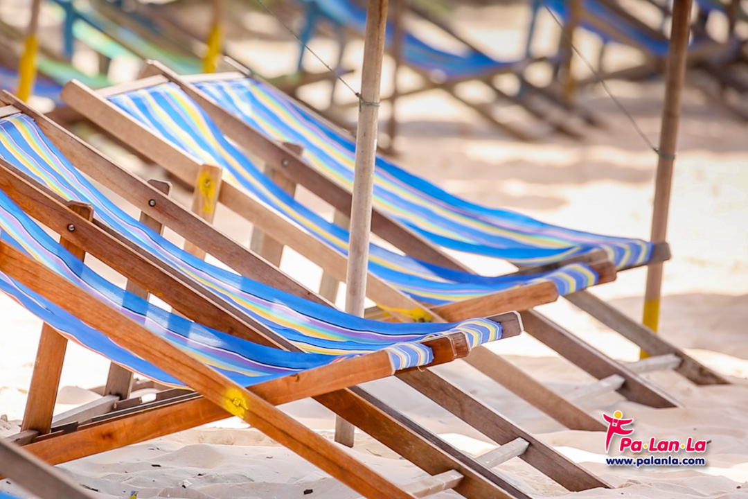 เก้าอี้ชายหาดสำหรับให้นักท่องเที่ยวเช่าไว้เอนกายพักผ่อนหรือบางคนก็ใช้วางของระหว่างทำกิจกรรม