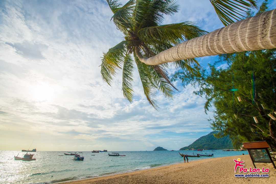 ต้นมะพร้าวและชายหาดสีขาวสวยรอบเกาะเต่า
