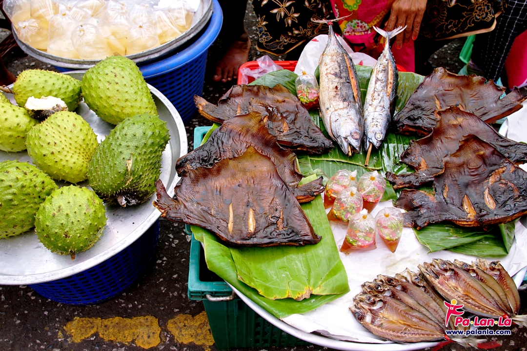 แม่ค้านำทุเรียนน้ำมาวางขาย