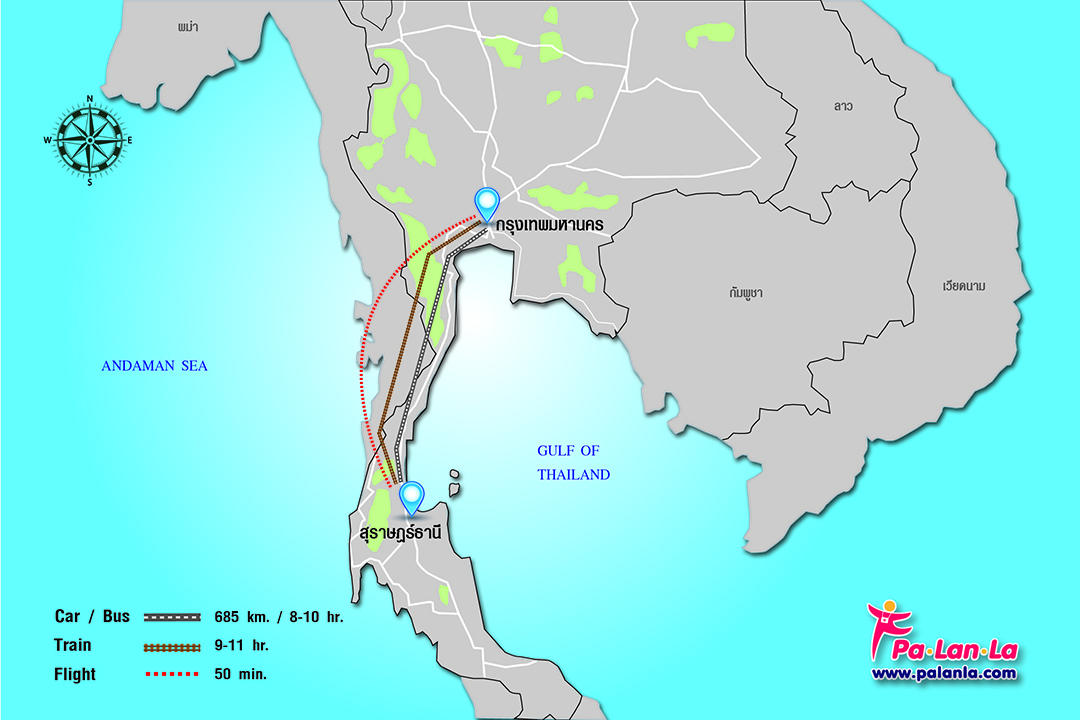 การเดินทางจากกรุงเทพฯ ไปยังสุราษฎร์ธานี