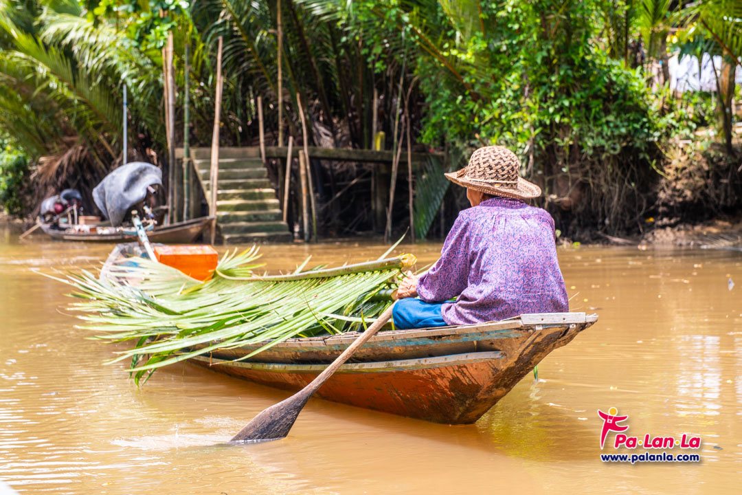 ชาวบ้านกับเรือแจวบรรทุกใบจาก