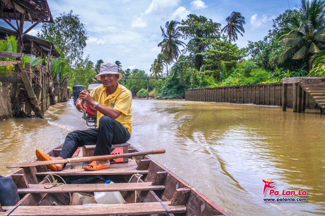 คุณลุงที่เป็นคนขับเรือนำชมคลองร้อยสายให้เรา