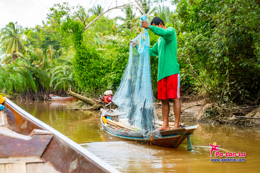 ชาวบ้านหว่านแหในคลอง