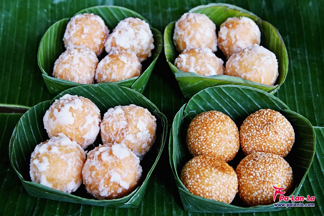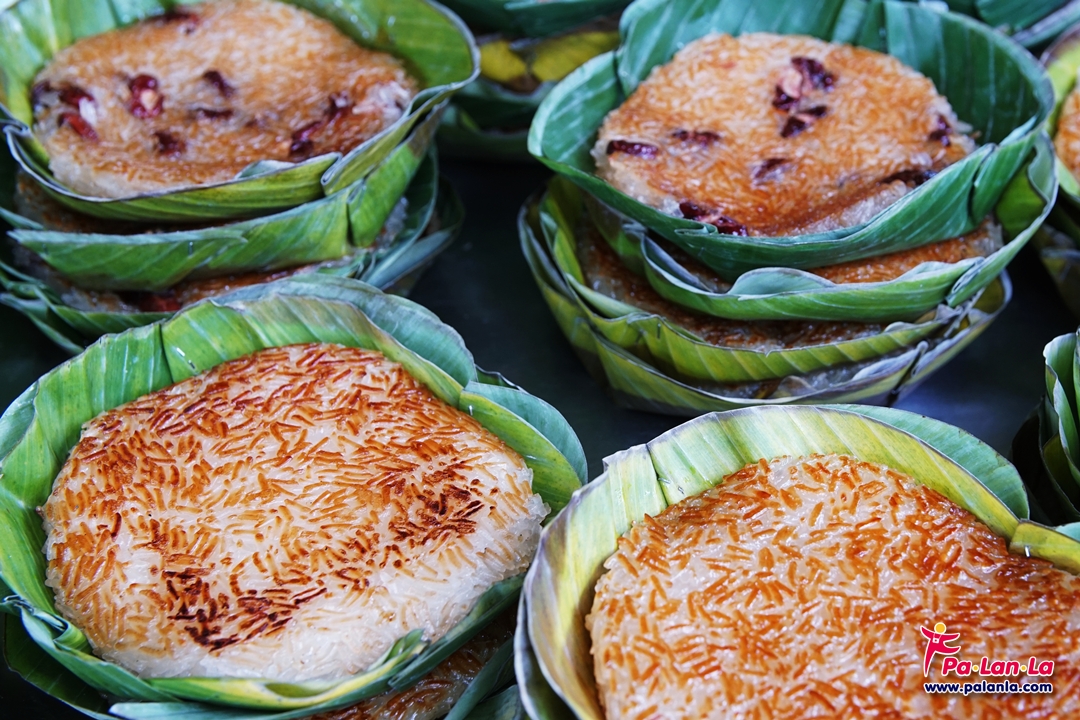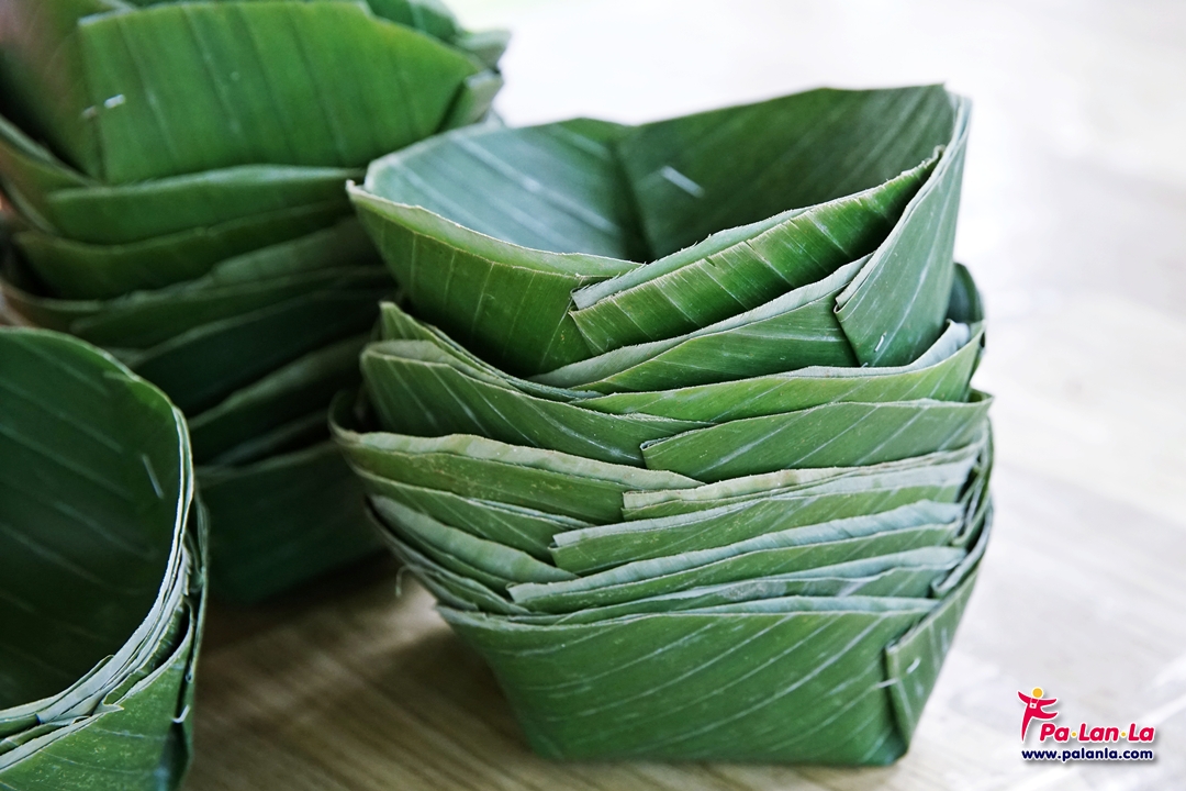 ขนมไข่หงส์สดใหม่ในภาชนะจากใบตองน่ารับประทาน