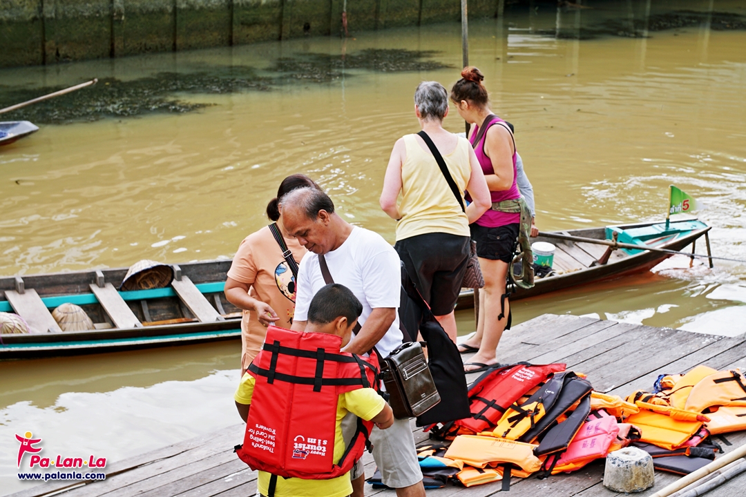 เรือแจวนำนักท่องเที่ยวเที่ยวชมคลองบางใบไม้ เที่ยวละ 20 บาท