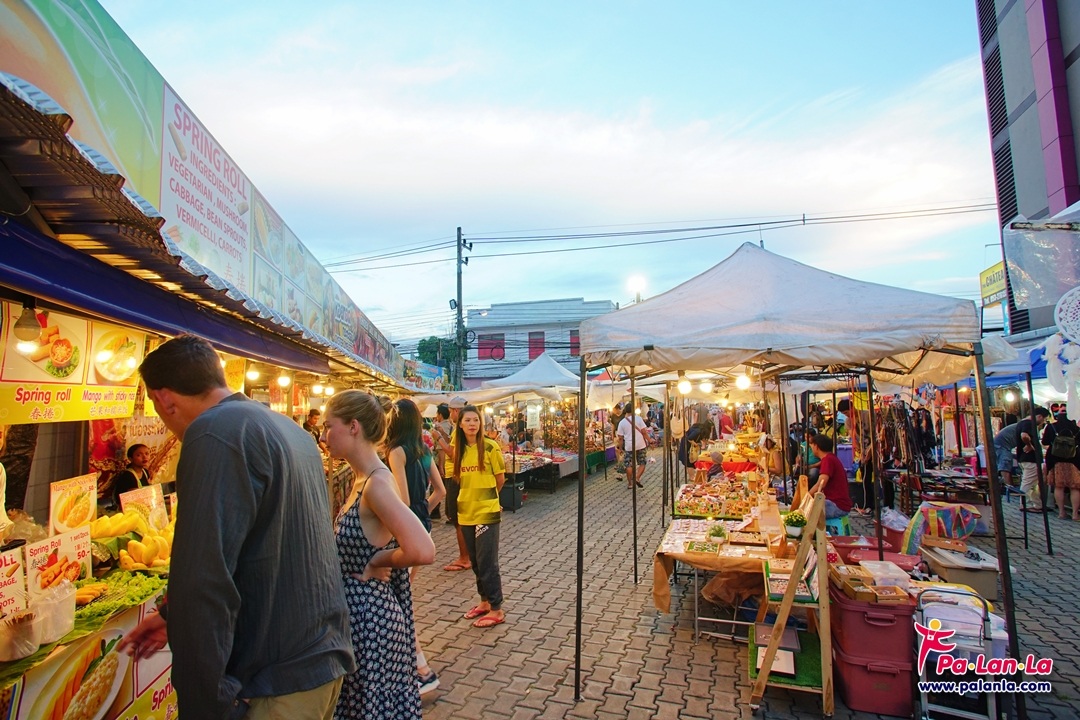 บรรยากาศของถนนคนเดินวันเสาร์ก่อนพลบค่ำ