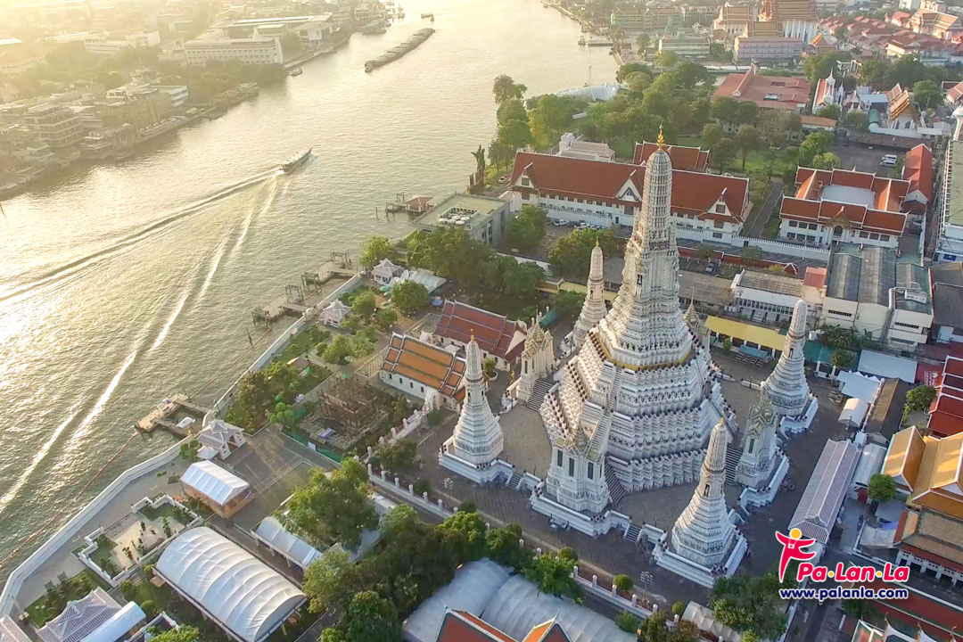 วัดอรุณราชวราราม ราชวรมหาวิหาร หรือ วัดอรุณฯ เป็นสถานที่ท่องเที่ยวสำคัญแห่งหนึ่งของประเทศไทย ด้วยสถาปัตยกรรมที่สวยงาม มีพระปรางค์องค์ใหญ่ประดับด้วยกระเบื้องสีตั้งเด่นริมแม่น้ำเจ้าพระยา วัดแห่งนี้จึงนับเป็นจุดชมพระอาทิตย์ตกที่สวยงามที่สุดแห่งหนึ่งของกรุงเทพฯ Palanla.com ได้รวบรวมพิกัดมุมต่างๆ มาฝากสำหรับผู้ที่ต้องการหามุมสวยๆ ถ่ายภาพพระปรางค์วัดอรุณฯ