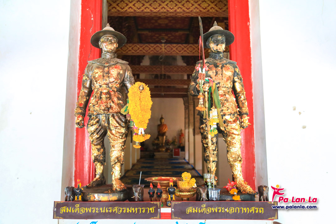 รูปปั้นสมเด็จพระนเรศวรมหาราชและสมเด็จพระเอกาทศรถในบริเวณวัด