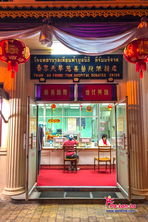 โรงพยาบาลเทียนฟ้ามูลนิธิ (Thian Fah Foundation Hospital) เป็นโรงพยาบาลที่ตั้งอยู่ในย่านเยาวราช มีจุดประสงค์เพื่อรักษาผู้ป่วยที่ยากไร้โดยไม่เลือกชนชั้นวรรณะ เชื้อชาติ ศาสนา และไม่เสียค่าใช้จ่ายหรือเสียในราคาย่อมเยา นอกจากนี้ที่นี่ยังมีสิ่งศักดิ์สิทธิ์อันเป็นที่เคารพของชาวจีนและชาวไทยอย่างมาก นั่นคือศาลเจ้าแม่กวนอิม ภายในมีรูปเจ้าแม่กวนอิมแกะสลักศิลปะสมัยราชวงศ์ถังที่มีความประณีตงดงาม ซึ่งมีอายุราวๆ 1,000 ปีให้ได้สักการบูชา