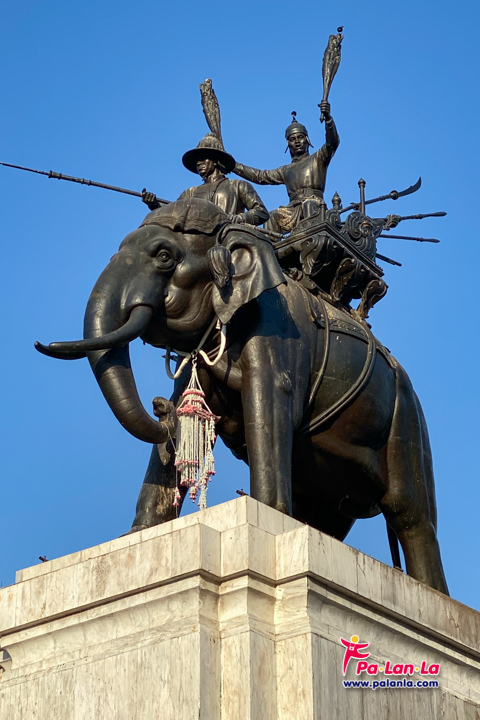 อนุสาวรีย์ของสมเด็จพระนเรศวรมหาราชขณะทรงช้างศึกออกกระทำยุทธหัตถีกับสมเด็จพระมหาอุปราชา