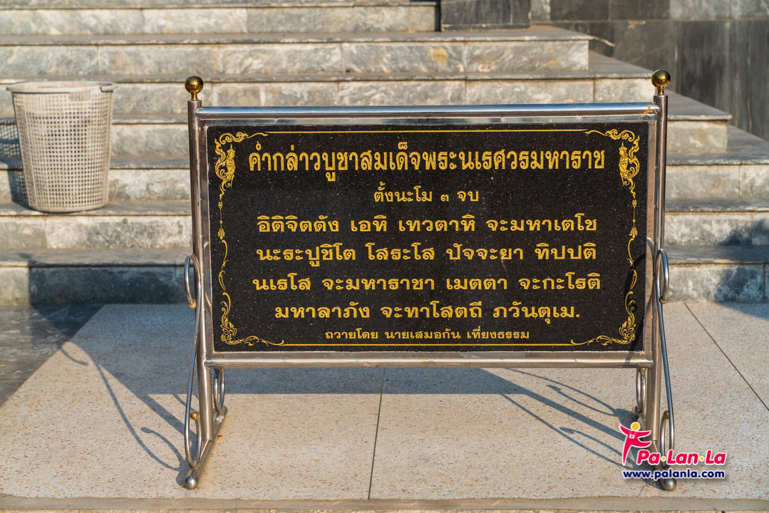 ป้ายจารึกพระราชประวัติของสมเด็จพระนเรศวรมหาราชที่ฐานพระบรมราชานุสรณ์