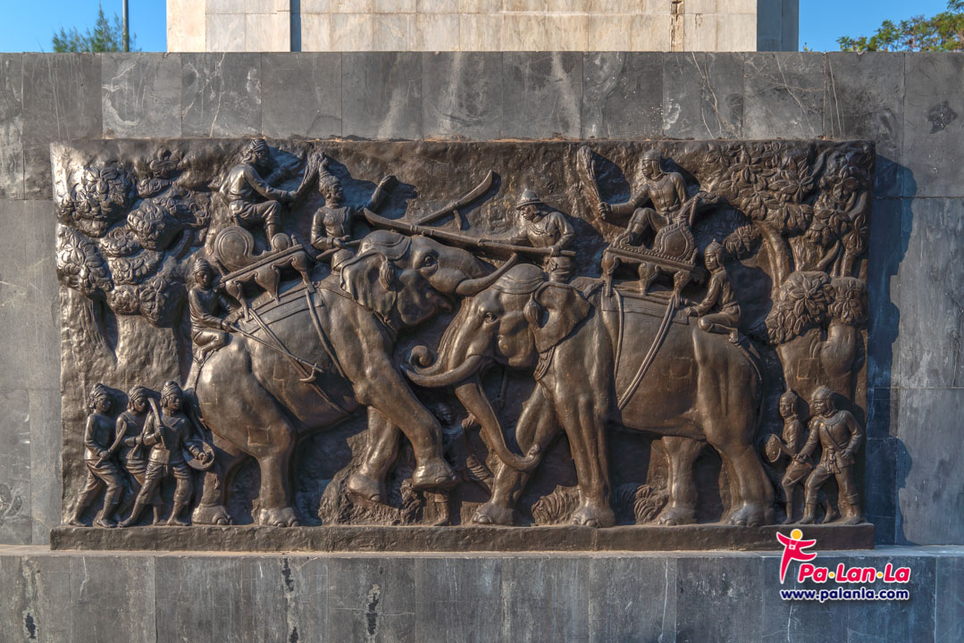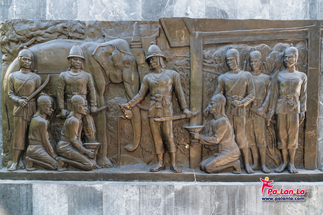 ภาพศิลปะนูนต่ำเหตุการณ์ยุทธหัตถีระหว่างพระนเรศวรและพระมหาอุปราชา