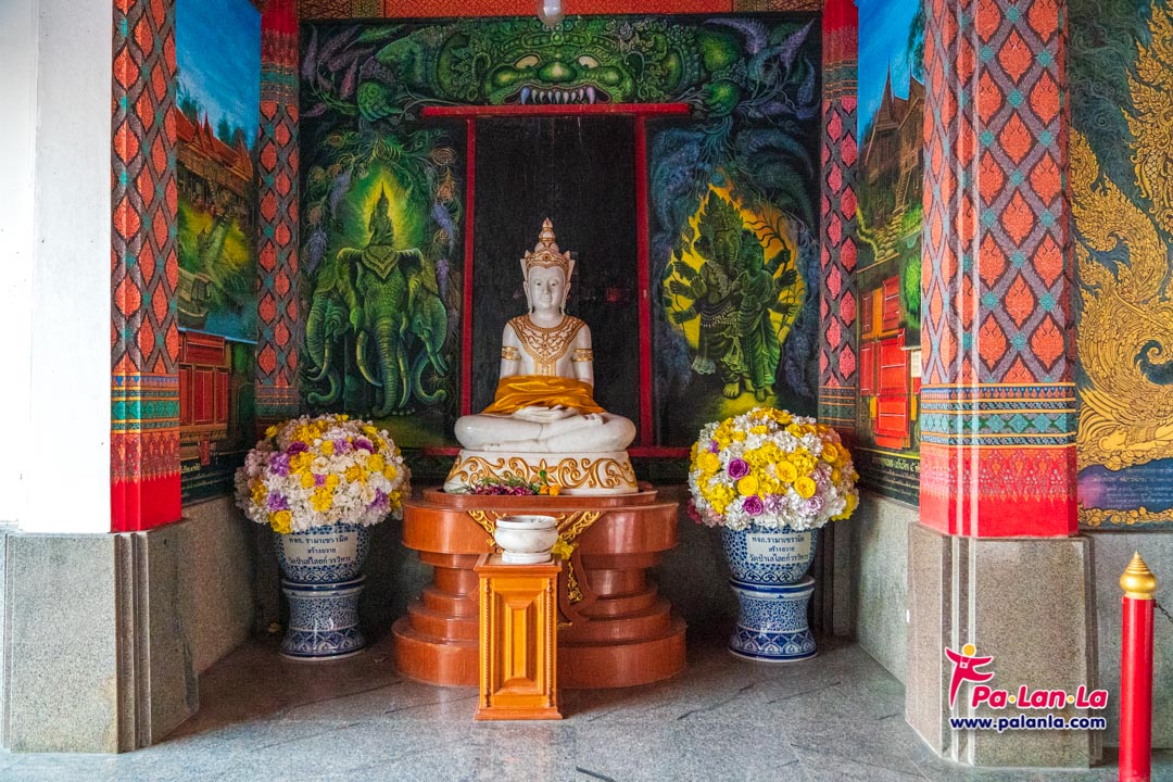 พระพุทธรูปหินขาวทรงเครื่องภายในวิหาร