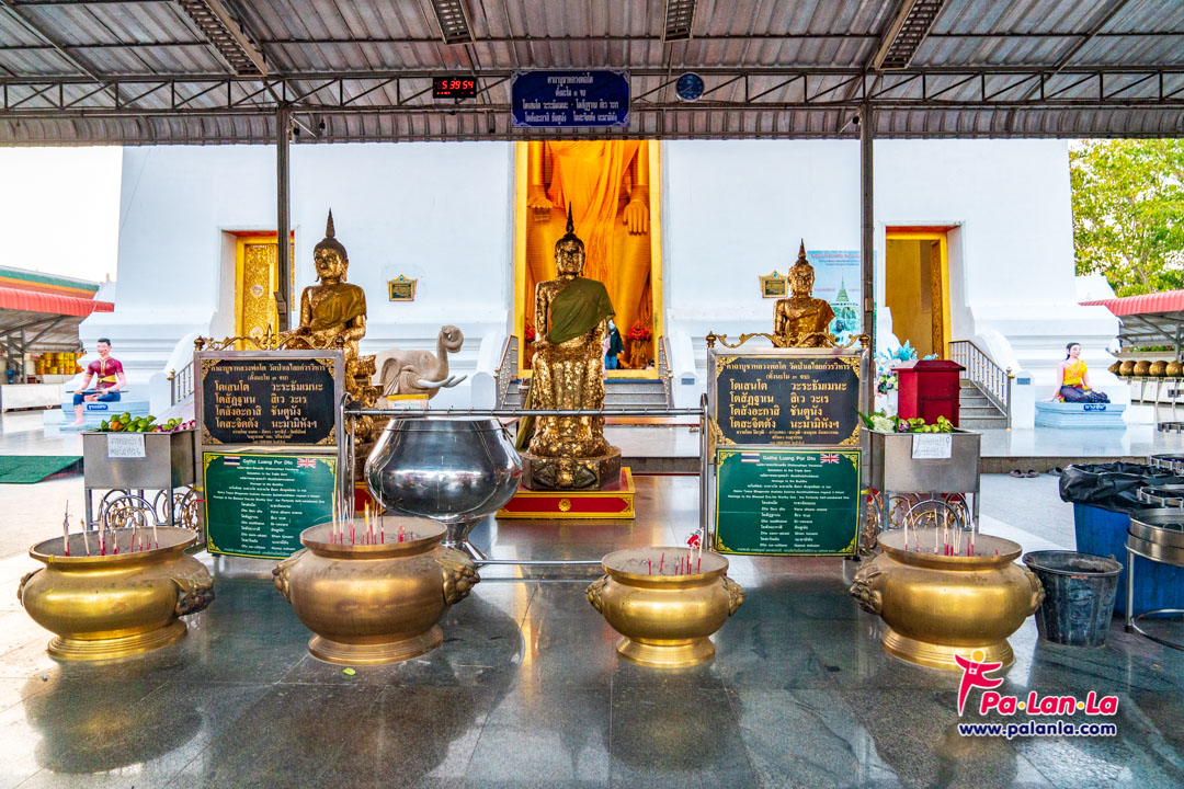 นักท่องเที่ยวสามารถปิดทองหลวงพ่อโตจำลองได้ที่ด้านหน้าวิหาร