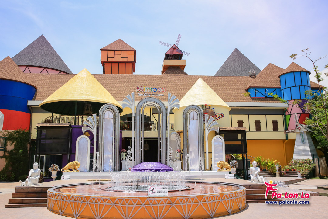 มิโมซ่า (Mimosa) เมืองจำลองสถาปัตยกรรมยุคเรอเนซองส์ที่สวยงามและโรแมนติก ให้บรรยากาศราวกับอยู่ในหมู่บ้านชนบทของประเทศฝรั่งเศส โดยมีคอนเซ็ปต์เป็นเมืองแห่งความรักจึงเหมาะกับการเดินเล่นถ่ายรูปเช็คอินกับคนรู้ใจอย่างมาก และยังมีพิพิธภัณฑ์ภาพ 3 มิติเสมือนจริงให้ได้ชมและถ่ายภาพ ในยามค่ำจะมีน้ำพุดนตรีแสงสีเสียงประกอบการแสดงคาบาเร่ต์โชว์จากพัทยาสุดอลังการอันเป็นไฮไลท์ของ Mimosa เมืองแห่งความรักแห่งนี้
