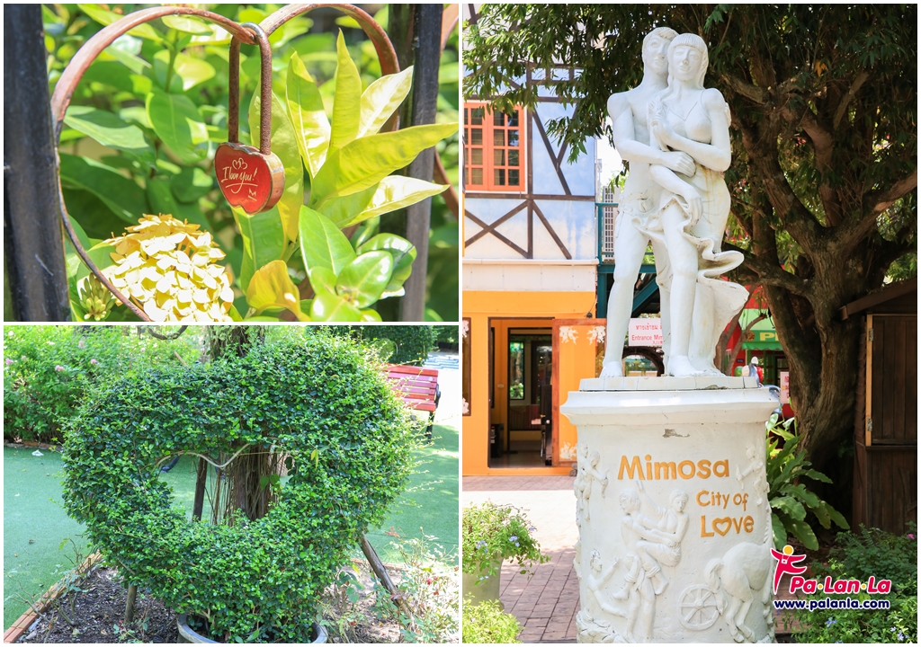 รูปปั้นและการแต่งสวนตามมุมต่างๆ ใน Mimosa Land of Love