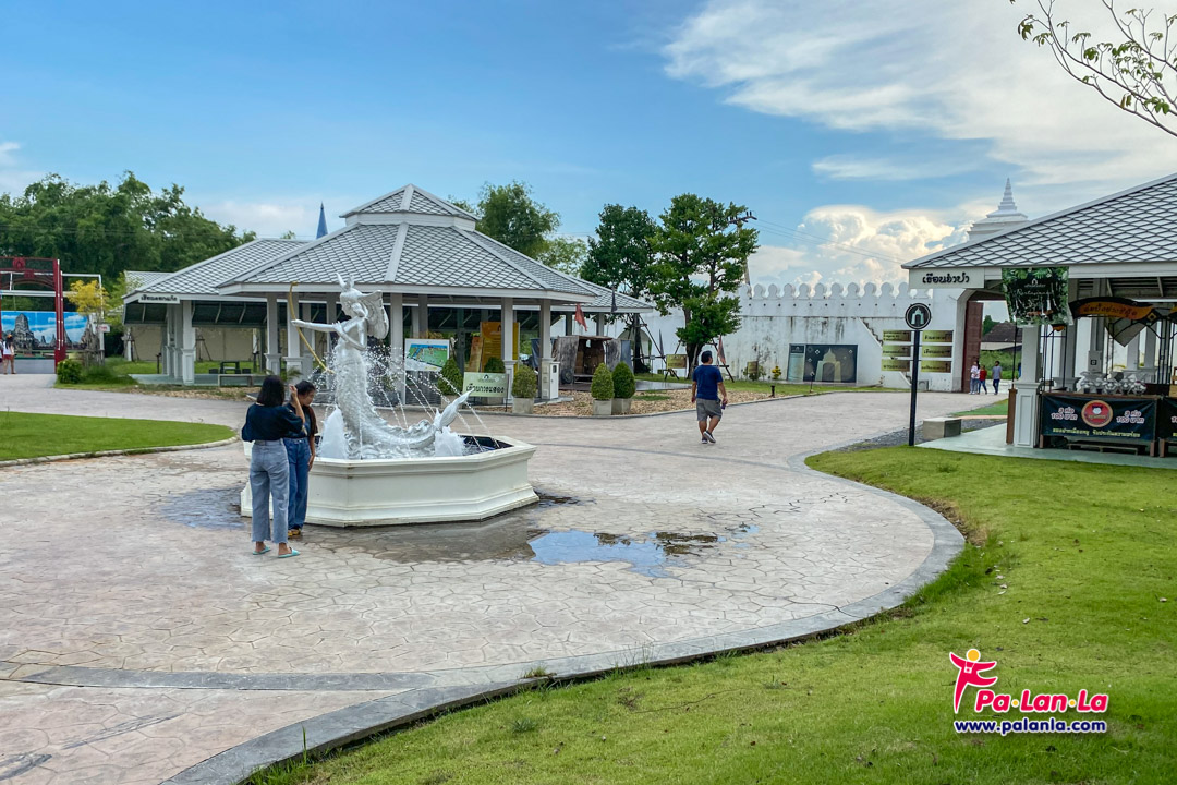 ลานน้ำพุกับประติมากรรมรูปนางเงือก