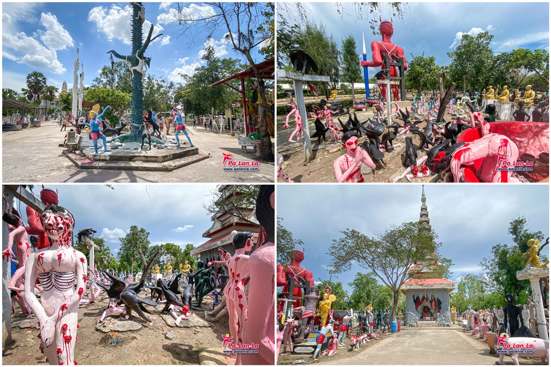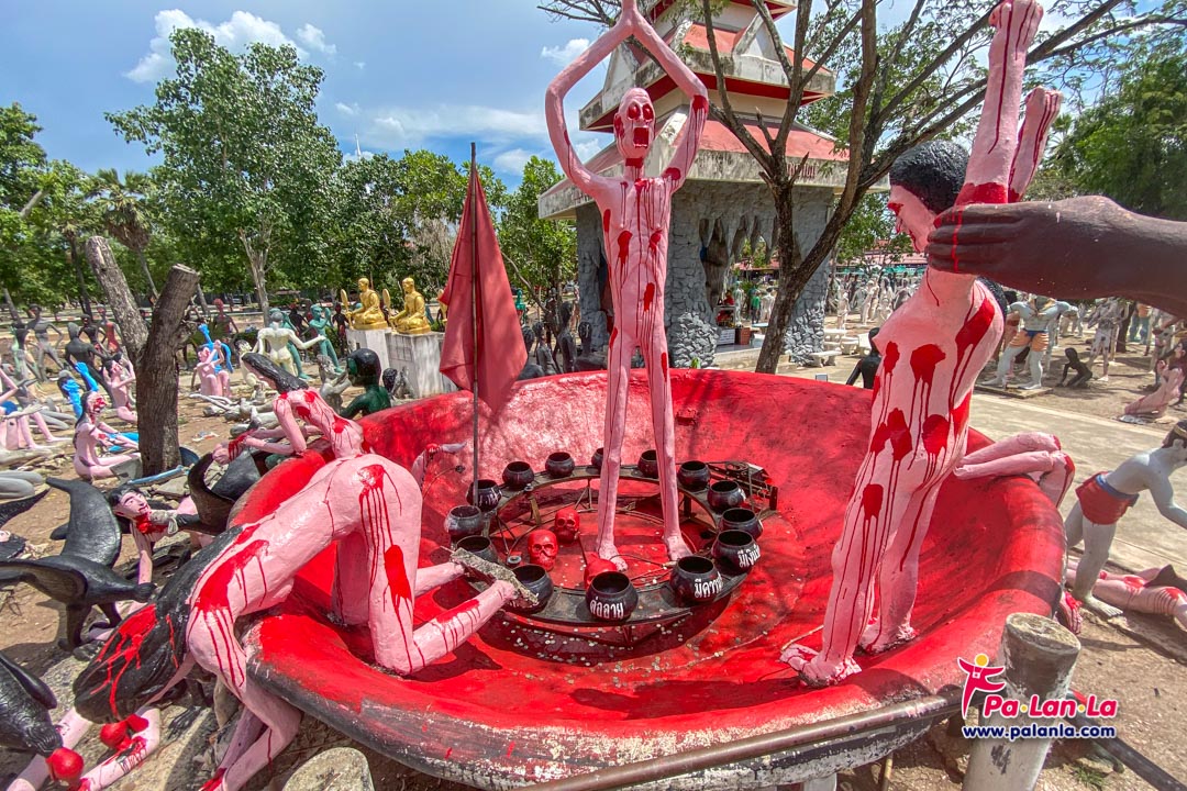 ความน่าสยดสยองของรูปปั้นที่เมืองนรกภูมิ ทั้งเปรตที่ได้รับความทุกข์ทรมานและโดนฝูงแร้งจิก ต้นงิ้วที่เต็มไปด้วยหนามแหลม