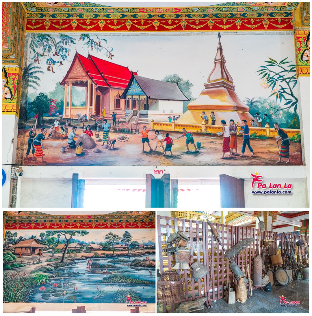 ภาพเขียนแสดงเรื่องราวการดำเนินชีวิตประจำวันของชาวขอนแก่นในอดีต และของเก่าที่เป็นอุปกรณ์ในการหากินของชาวอีสานที่จัดแสดงอยู่บริเวณชั้น 2