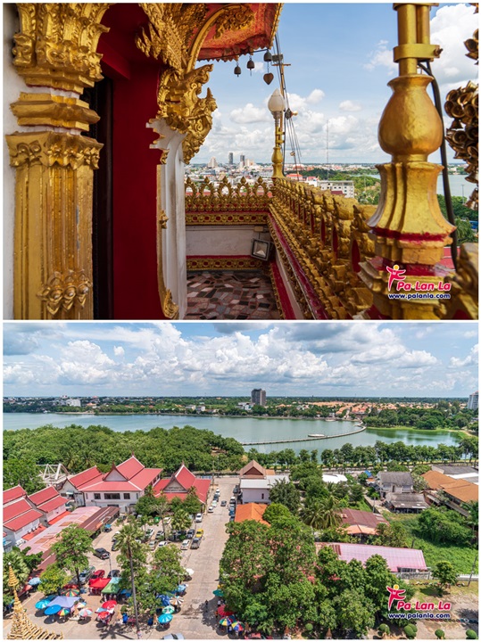 จากระเบียงชั้น 9 ของพระมหาธาตุฯ จะสามารถมองเห็นบึงแก่นนครและเมืองขอนแก่นได้อย่างชัดเจน