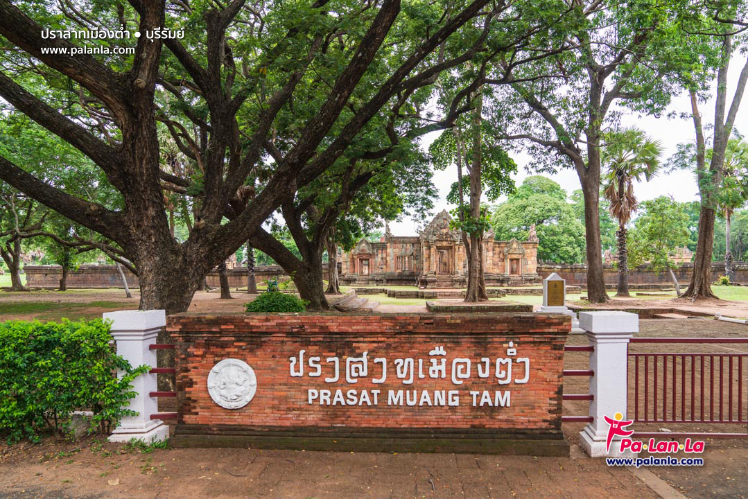 ป้ายบริเวณทางเข้าสู่เขตปราสาทเมืองต่ำ