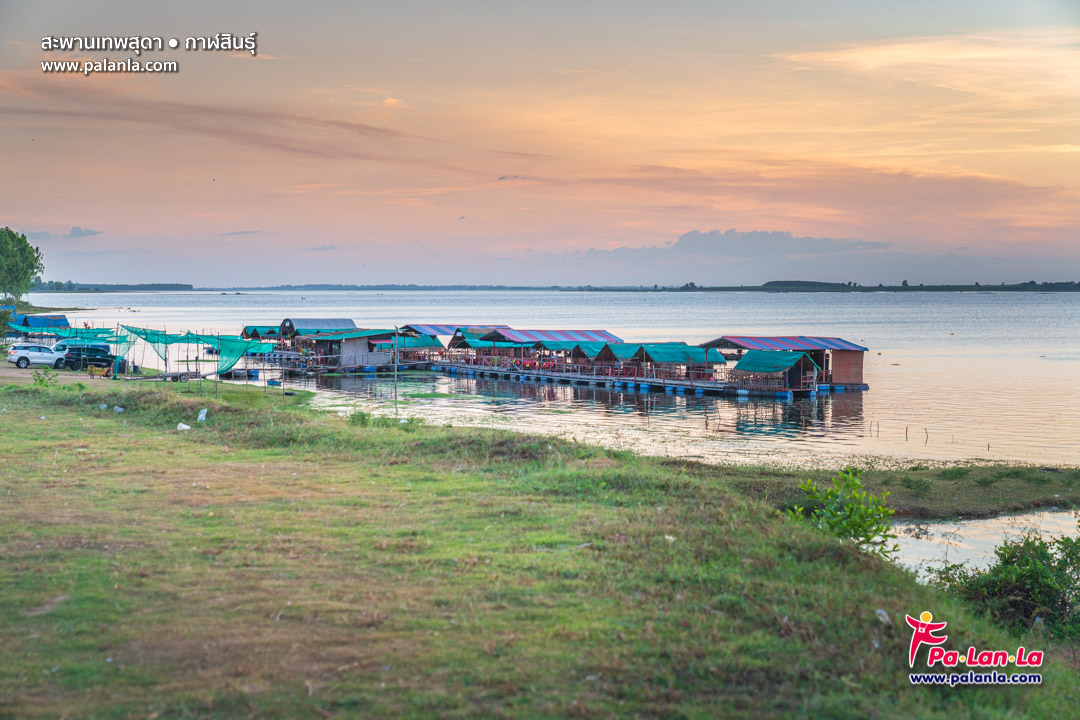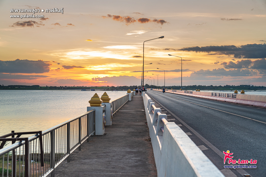 ชมทัศนียภาพที่สวยงามของเขื่อนลำปาวจากสะพานเทพสุดา โดยเฉพาะในช่วงเวลาเย็นๆ ที่พระอาทิตย์ตกท่ามกลางบรรยากาศที่สวยงามและผ่อนคลาย