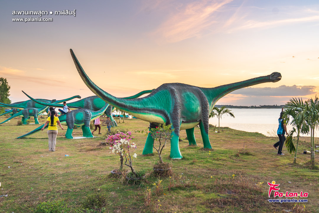 รูปปั้นไดโนเสาร์ขนาดใหญ่ที่สวนสาธารณะบริเวณสะพานเทพสุดา