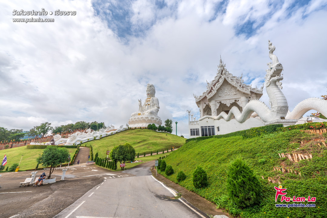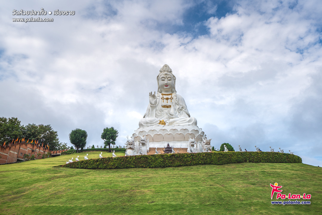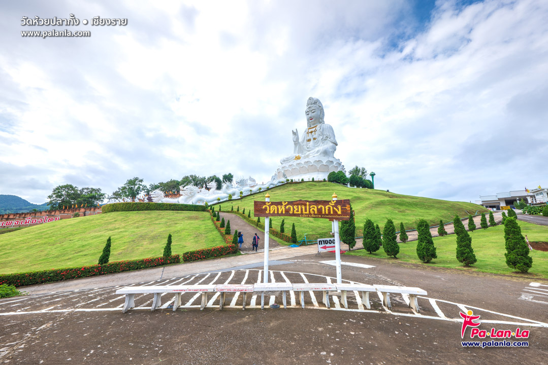 วัดห้วยปลากั้ง (Wat Huay Pla Kang) เป็นอีกวัดหนึ่งที่มีความสวยงามไม่แพ้วัดอื่นๆ ในจังหวัดเชียงราย ด้วยทัศนียภาพที่งดงามของเทือกเขาที่รายล้อม และจุดเด่นคือ "พบโชคธรรมเจดีย์" เจดีย์สูง 9 ชั้น ทรงแหลมศิลปะแบบจีนผสมล้านนา และองค์พระโพธิสัตว์เจ้าแม่กวนอิมขนาดใหญ่ที่สุดในประเทศไทยด้วยความสูง 79 เมตรที่ประดิษฐานอย่างโดดเด่นเป็นสง่า จนชวนให้นึกว่าวัดแห่งนี้คือเมืองจำลองของสวรรค์