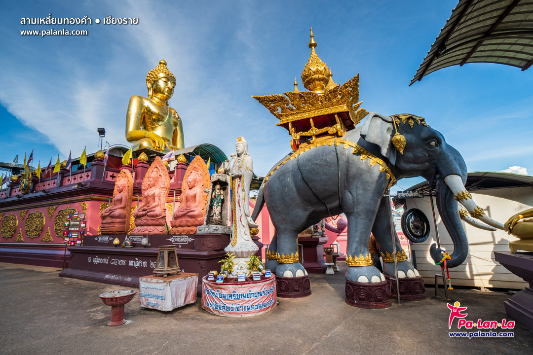 สามเหลี่ยมทองคำตั้งอยู่ที่อำเภอเชียงแสน อยู่ห่างจากตัวเมืองเชียงราย 70 กิโลเมตร ใช้เวลาเดินทางโดยรถยนต์ประมาณ 1 ชั่วโมง 30 นาที หากไม่ได้โดยรถยนต์ส่วนตัวนักท่องเที่ยวสามารถขึ้นรถโดยสารประจำทางสีเขียว สายเชียงราย – เชียงแสน จากสถานีขนส่งเชียงรายนั่งไปลงที่เชียงแสน ค่าโดยสารประมาณ 40 บาท