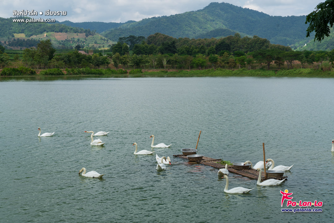 ห่านขาวภายในสระน้ำที่ไร่สิงห์ปาร์ค