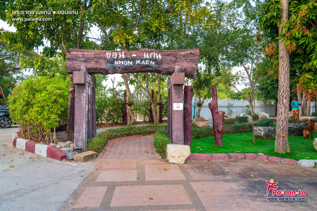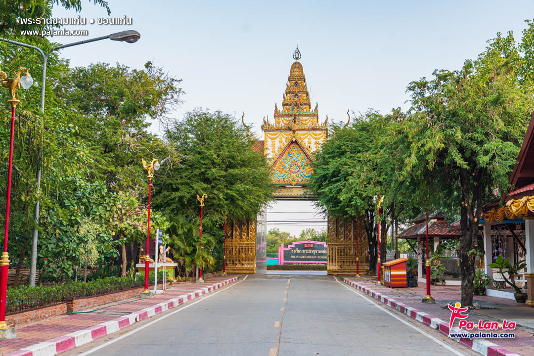 บริเวณประตูทางเข้าสู่พระธาตุขามแก่น ฝั่งตรงข้ามเป็นโรงเรียนพระธาตุขามแก่น