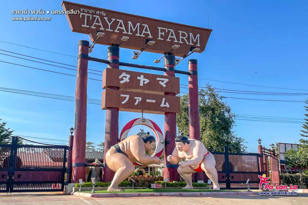 สิ่งแรกที่จะสังเกตเห็นเมื่อเดินทางมาถึงธายาม่า ฟาร์มก็คือ รูปปั้นซูโม่ยักษ์ ซึ่งนับว่าเป็นแลนด์มาร์กของที่นี่ ซูโม่เป็นกีฬาประจำชาติของชาวญี่ปุ่น เรียกว่าใครมาเที่ยวธายาม่า ฟาร์มก็ต้องมาถ่ายรูป เช็คอินกันตรงจุดนี้