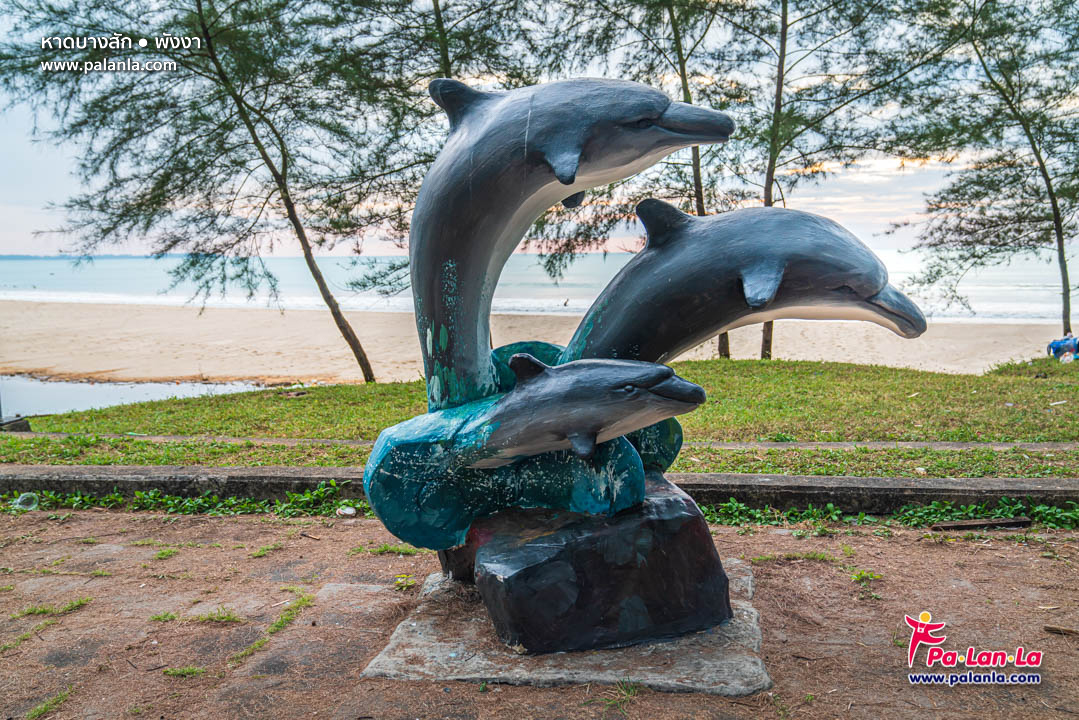 รูปปั้นปลาโลมาบริเวณชายหาด
