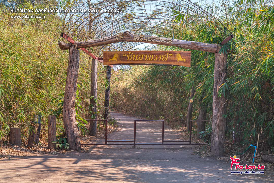 หินสามวาฬ ตั้งอยู่ที่บ้านโนนไทรทอง ตำบลโคกก่อง อำเภอเมือง จังหวัดบึงกาฬ โดยอยู่ห่างจากตัวจังหวัดบึงกาฬประมาณ 25 กิโลเมตร ใช้เวลาเดินทางโดยรถยนต์ 25 นาที