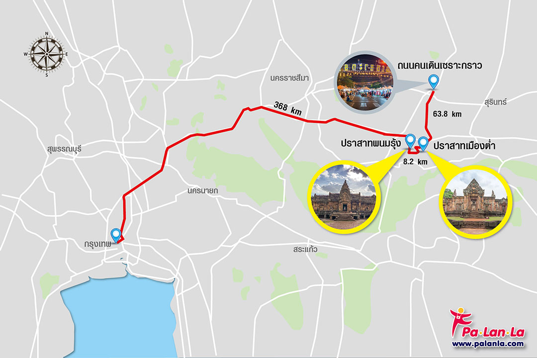 ทริปนี้ Palanla จะพาทุกคนท่องเที่ยวไปยัง 2 จังหวัดของภาคอีสานที่มีชื่อเสียงในเรื่องของปราสาทหินและในอดีตเป็นบริเวณที่เคยมีภูเขาไฟมาก่อน ได้ยินเช่นนี้แล้วหลายๆ คนอาจจะพอนึกออก เพราะเราจะพาออกเดินทางไปที่จังหวัดบุรีรัมย์และนครราชสีมา จังหวัดหลังเป็นชื่อที่ฟังแล้วอาจให้ความรู้สึกคุ้นเคยมากกว่าเพราะอยู่ไม่ไกลจากกรุงเทพฯ มากนัก ทว่าบุรีรัมย์เองก็ไม่ถือว่าห่างไกลเพราะสองจังหวัดนี้อยู่ติดกันเลยนั่นเอง เรียกว่าหากไปถึงนครราชสีมาขับรถต่อไปอีกหน่อยก็เข้าเขตบุรีรัมย์แล้ว
