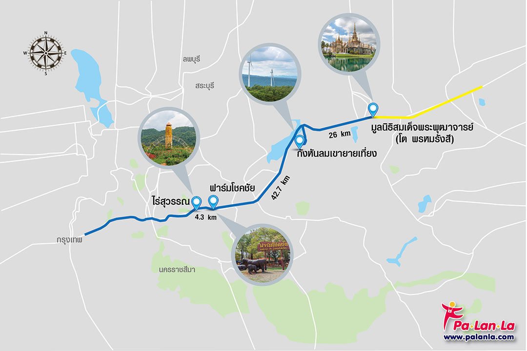 (นครราชสีมา – กรุงเทพฯ : วัดหลวงพ่อโต - กังหันลมเขายายเที่ยง – ฟาร์มโชคชัย - ไร่สุวรรณ – กทม.)