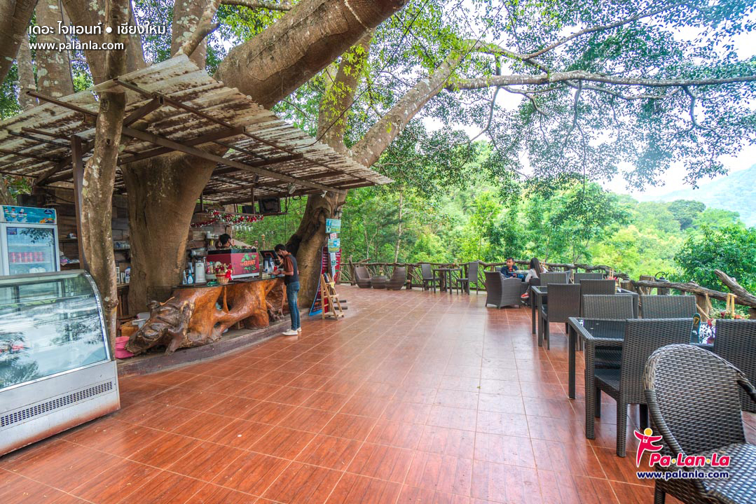 ลานระเบียงที่นั่งกว้างขวางที่สร้างโอบล้อมต้นไม้ใหญ่เอาไว้