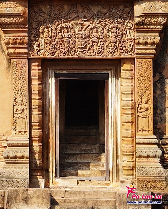 ปราสาทประธานมีทับหลังสลักเป็นรูปศิวนาฎราช (การร่ายรำของพระศิวะ) เสาประตูทั้งสองข้างสลักเป็นลวดลายนางอัปสราถือดอกบัวที่มีลักษณะคล้ายกับนางอัปสราที่ปราสาทนครวัด ประเทศกัมพูชา