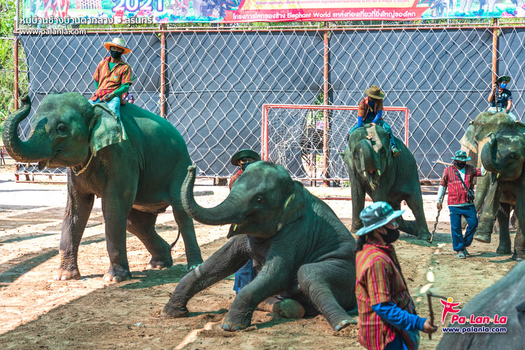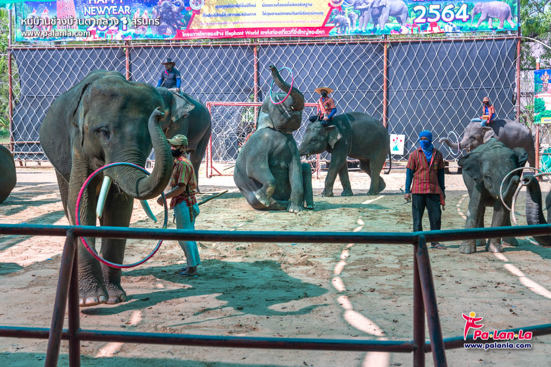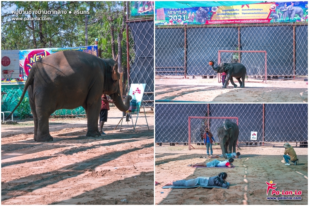 ชมการแสดงช้าง อาทิ ช้างเต้นรำ ช้างวาดรูป ช้างปาลูกโป่ง ช้างเตะฟุตบอล ฯลฯ